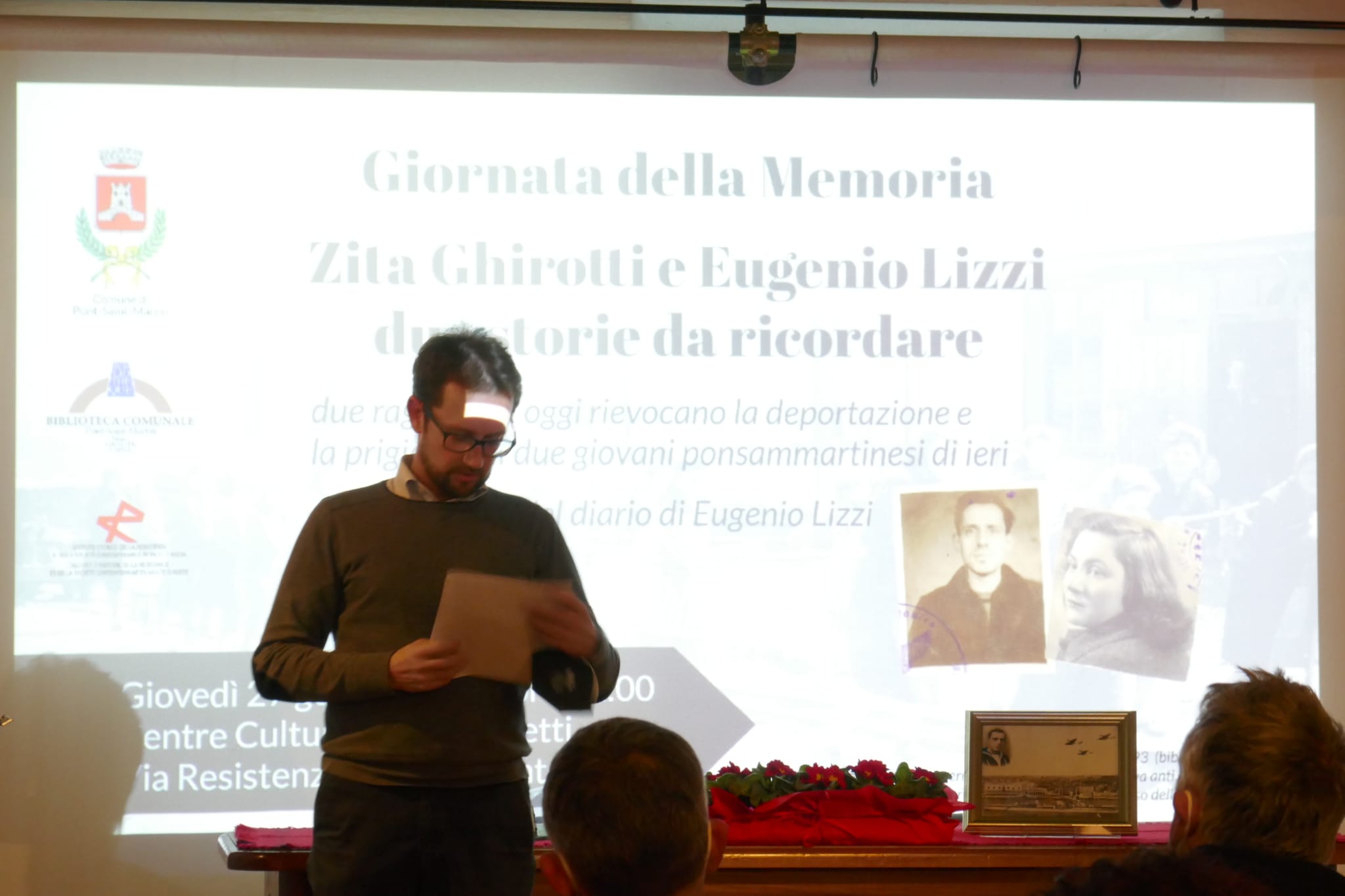 Il progetto è stato presentato in occasione della Giornata della Memoria a Pont-Saint-Martin. I protagonisti ricordati durante il corso della serata sono stati i ponsammartinesi Zita Ghirotti e Eugenio Lizzi. Vanessa Lapaglia e Giada Treves, studentesse di quinta del Liceo Economico Sociale di Verrès, con un lavoro di approfondimento hanno ricostruito le loro storie, che hanno esposto e interpretato durante l’incontro.