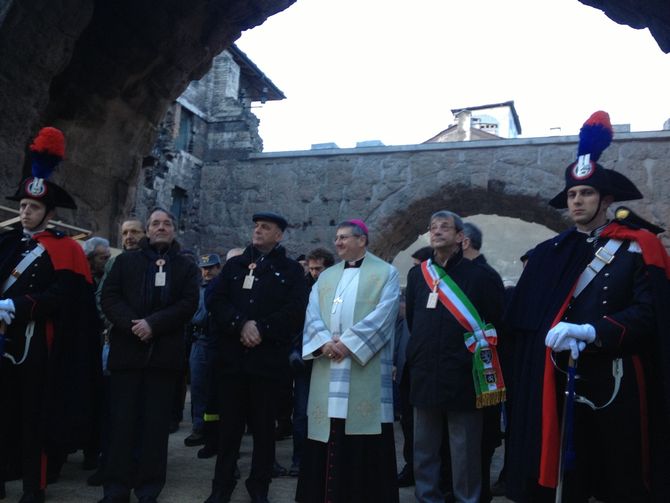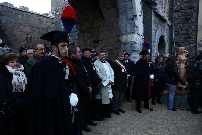 Partito dall’Arco di Augusto, il corteo si è fermato alle Porte Pretoriane che sono state restituite alla comunità: in questi giorni sono stati ultimati i lavori per coprire temporaneamente lo scavo archeologico e rendere accessibile il cuore della fiera ad artigiani e visitatori. Gli artigiani storici non hanno dovuto, così, rinunciare al posto d’onore ai piedi delle porte.