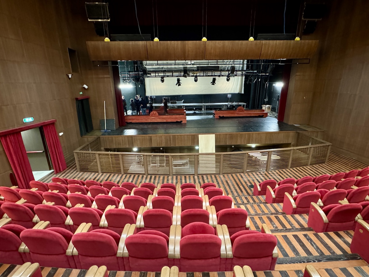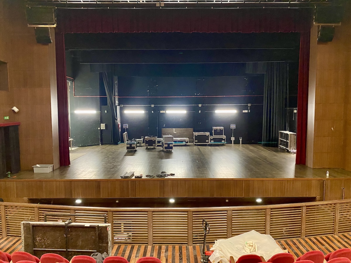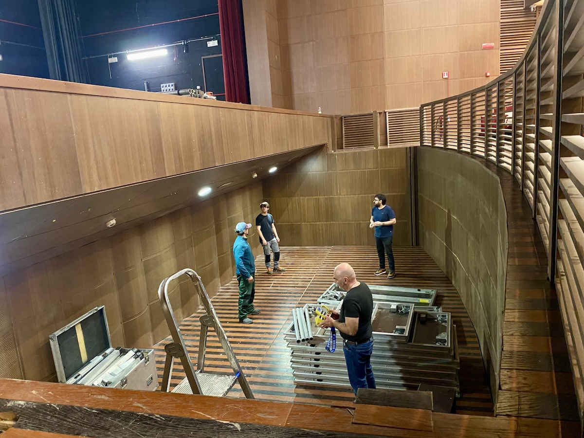 Per agevolare l’apertura della buca sono stati necessari alcuni adeguamenti degli spazi della platea: sono state smontate e tolte le prime tre file di poltroncine e montata una ringhiera di protezione. Lo spazio non è molto ampio, ma è profondo oltre due metri e mezzo. Questa caratteristica impedisce alle stelle sul palco di vedere il Direttore d’orchestra, un grosso problema in un’opera lirica. A completare i lavori di preparazione è stata quindi montata una pedana per alzare il livello della buca dell’orchestra.