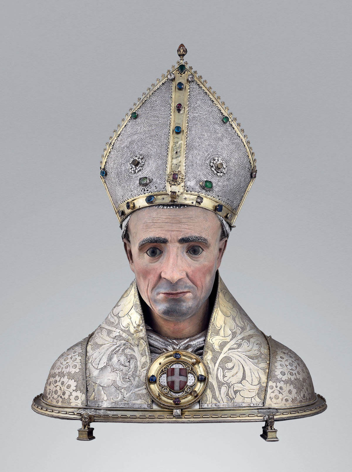 La mostra ha infatti rappresentato l’occasione di importanti approfondimenti nelle ricerche e negli studi restituiti nel ricco catalogo, a cura di Simonetta Castronovo e Viviana Maria Vallet, unico per le due sedi espositive. In particolare, uno dei temi affrontati è quello dell’uso della policromia sull’argento, a vantaggio di un maggior naturalismo, reso possibile dalla sapiente padronanza di due arti diverse, l’oreficeria e la pittura, affidata alla responsabilità di maestri operanti in collaborazione. Una peculiarità è ben evidenziata proprio nell’esposizione aostana, che accomuna i pregiati busti del tesoro della Cattedrale a quelli elvetici, per la prima volta visibili tutti insieme a confronto.