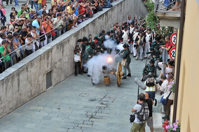 Il Borgo e il Forte di Bard ospiteranno rispettivamente l’accampamento francese e austro-piemontese con animazioni che coinvolgeranno direttamente il pubblico. Nella Piazza di Gola del Forte sarà allestito un mercatino a tema storico con oggettistica napoleonica (stampe d’epoca e cimeli originali, sartorie storiche, soldatinai, artigiani).  Sabato 5, alle ore 11.00, l’apertura solenne dell’evento, con l’alzabandiera, la parata militare in Piazza d’Armi e la coscrizione obbligatoria, ovvero la leva di massa che veniva effettuata in tempo di guerra. Tra le rievocazioni più suggestive, la simulazione dell’attacco notturno al Forte, che si svolgerà nel Borgo sabato 5 settembre – con l’ausilio di sei pezzi di artiglieria pesanti (cannoni da 3 e 5 metri), truppe di fanteria, artiglieria, cavalleria, granatieri – gare di velocità per fucilieri e parate militari.
