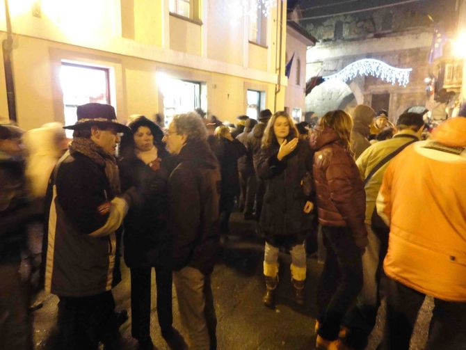 Una città che si trasforma. La Fiera di Sant’Orso ha da sempre un effetto magico su Aosta. Calata la sera e riposti gli oggetti di artigianato nelle scatole, le strade non si svuotano. Rimane la festa, rimane la voglia di allegria. E’ successo anche ieri sera, quando come ogni anno, si è ripetuta la felice tradizione della veillà. A dar aria di festa è stata la musica, quest’anno protagonista più che mai, con artisti che hanno riempito la via, fermandosi negli angoli più suggestivi per improvvisare concerti, e subito scattava il ballo, il coinvolgimento. Molti anche i gruppi folkloristici, che grazie ai loro costumi tradizionale hanno portato una ventata di passato.