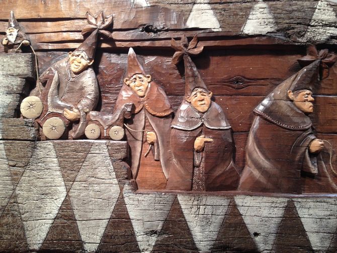 Classe 1966, Luciano Regazzoni, di Fénis, partecipa alla Millenaria dal1992. Inconfondibile il suo stile che predilige bassorilievi e pannelli, prevalentemente di noce antico, che usa come set naturale o luogo simbolico in cui far vivere personaggi fantastici, gnomi e folletti, in particolare. Tra i pezzi presentati in questa edizione un pezzo ricavato da un’anta di una vecchia cassaforte. “All’interno di questo pezzo, già di per sè particolare, ho realizzato un personaggio medievale che sembra uscire dal pannello portando con sè i tatà come vuole la tradizione”. Accanto a questo un altro pannello raffigura gnomi con al cappello a punta che "giocano" con dei tatà.