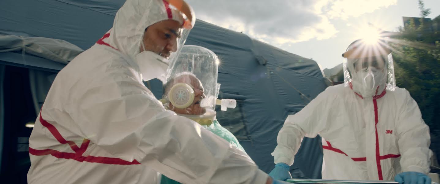 Una narrazione su più piani e con mezzi differenti: dalla GoPro, montata sul petto di un’infermiera o in un casco Cpap, a testimoniare le sensazioni soggettive, fino alla telecamera a spalla utilizzata nei reparti “puliti”. E ancora le interviste, con le voci in prima persona dei diretti interessati, investiti dal “ciclone” Covid.