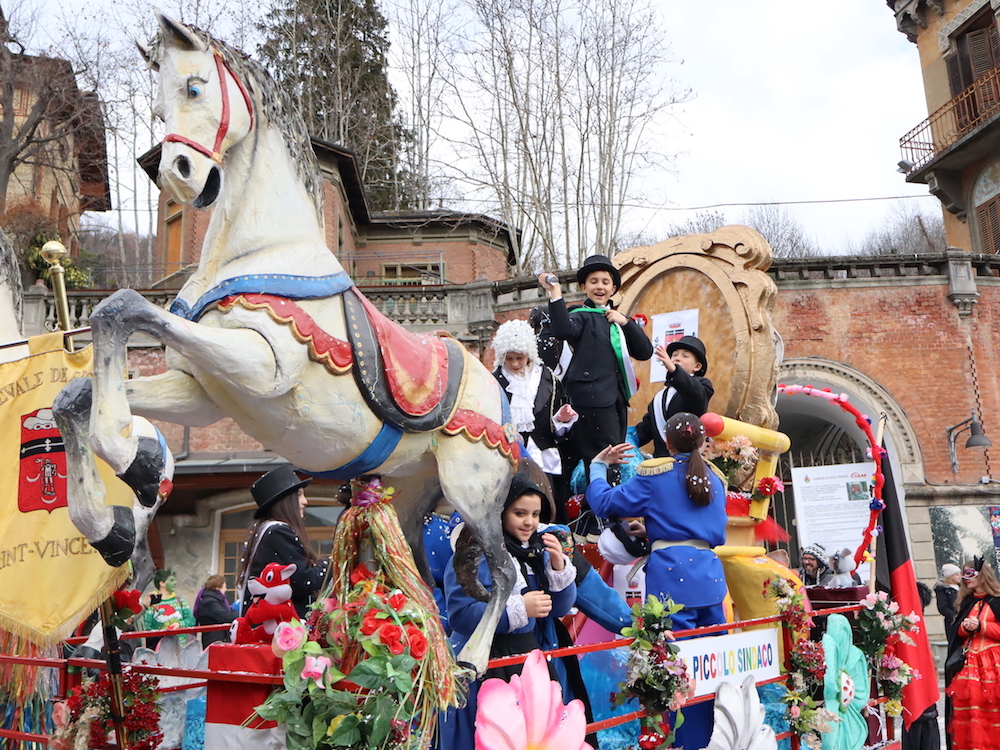 Dal 1962 lo chiamano Carnevale dei Piccoli, ma è una festa per grandi e piccini. Ieri pomeriggio, domenica 8 febbraio, carri e personaggi allegorici hanno sfilato tra le vie del centro di Saint-Vincent.