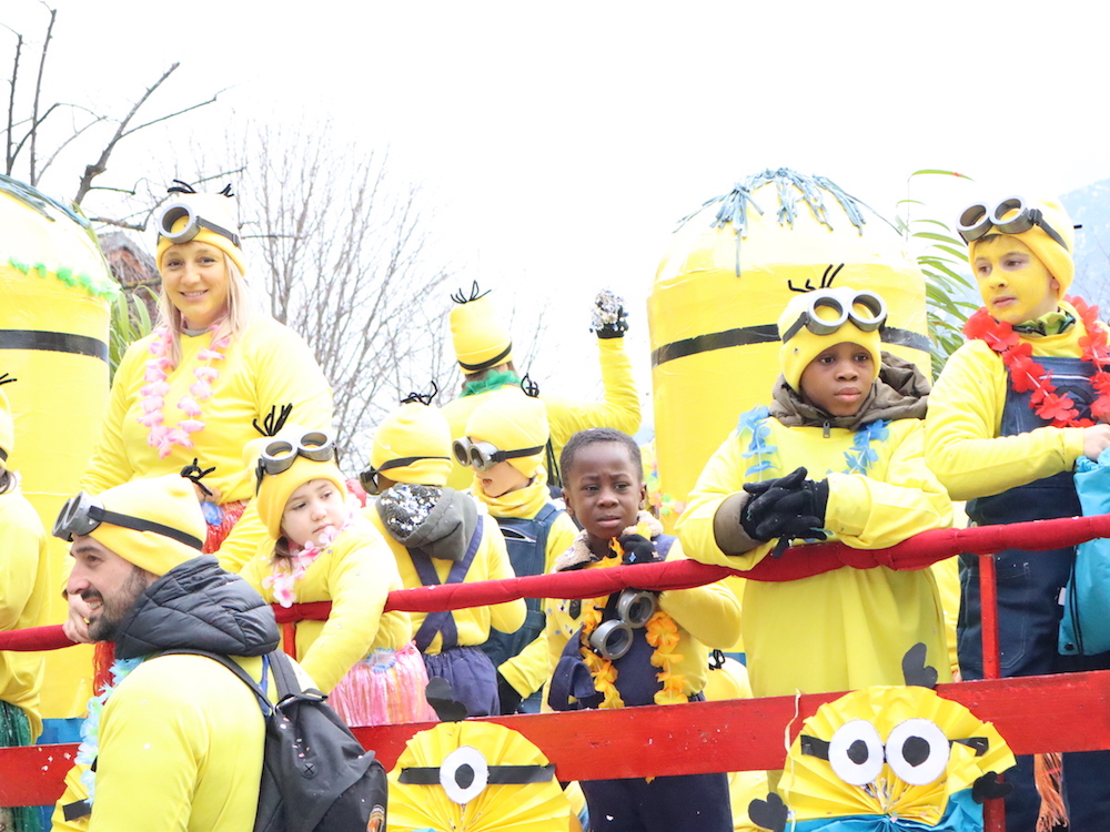 Ad aprire il corteo, la Banda musicale di Saint-Vincent, seguita da alcuni dei partecipanti del Carnaval Historique de Verrès e dal gruppo Pifferi e tamburi di Arnad. Oltre al carro del Piccolo Sindaco, con assessori, vigili, medici e vivandiere, a rallegrare la sfilata c’erano i pagliacci della Fondazione Crétier-Joris, i minion della scuola dell’infanzia e primaria di Moron e i fantasmi della collina di Châtillon.