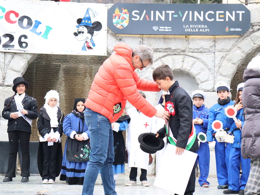 A vestire i panni del Piccolo Sindaco, per l’edizione 2026, è Hervé Pasqualon. Dieci anni, residente a Moron, con una passione per il calcio e per lo tsan. A lui sono state consegnate, dal primo cittadino Francesco Favre, le chiavi del paese. Le terrà per un’intera settimana, durante la quale gli toccherà, insieme alla sua mini Giunta, amministrare Saint-Vincent.