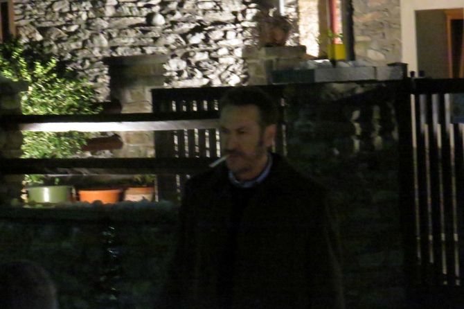 Dopodiché, il sole tramonta e in presenza di una luce partiolarmente apprezzata dalla troupe (“sbrighiamoci a girare, ché quelle montagne di sfondo son bellissime”) sul set spunta la “Volvo” del vice questore con il Loden e le Clarks. Pochi minuti ed ecco materializzarsi anche Marco Giallini, l'attore scelto per impersonare Rocco Schiavone in tv.