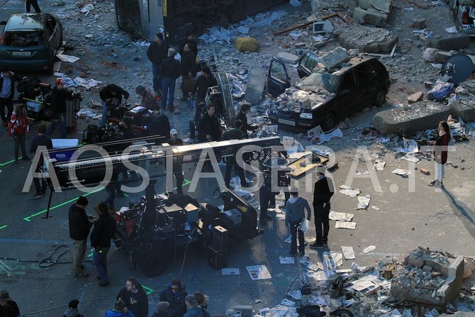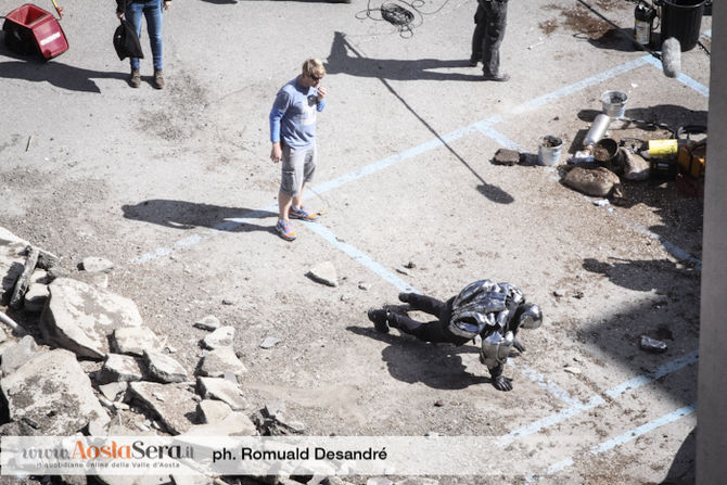 La giornata di riprese ad Aosta del kolossal hollywoodiano ‘The Avengers: Age of Ultron’ volge al termine – da domani infatti i set si sposteranno in Bassa Valle – e qualcosa comincia a delinearsi. Aosta si è trasformata, com’è ormai noto, in un paesino dell’Europa dell’Est, ma sopratutto in un paesino tutt’altro che tranquillo. Esplosioni, allagamenti, terremoti e raffiche di vento sono stati infatti il leitmotiv della giornata. Una serie di eventi che poco ha a che vedere con le calamità naturali ma che sembrerebbero invece essere causati da Ultron in persona, il potente androide senziente ‘supervillain’ principale della pellicola.