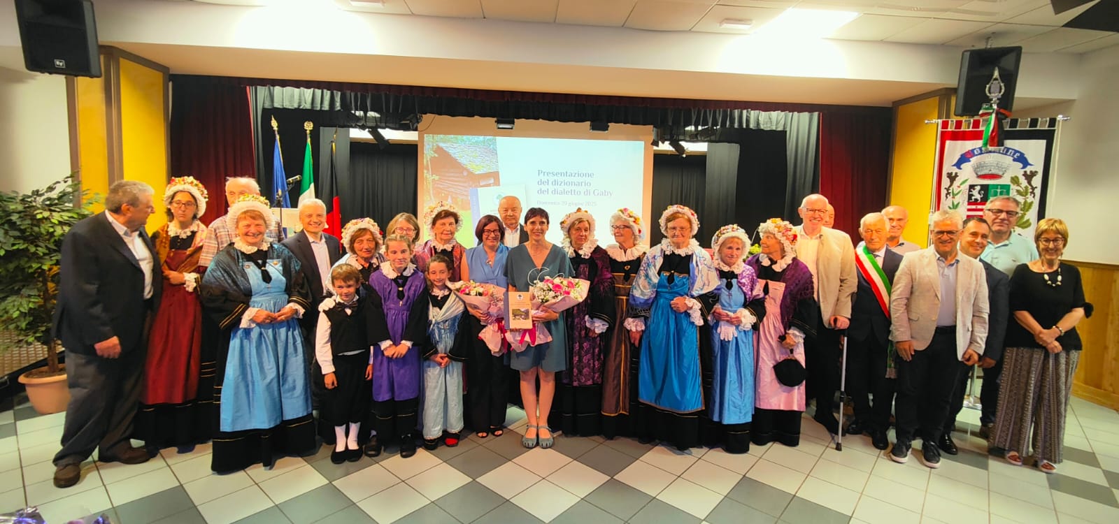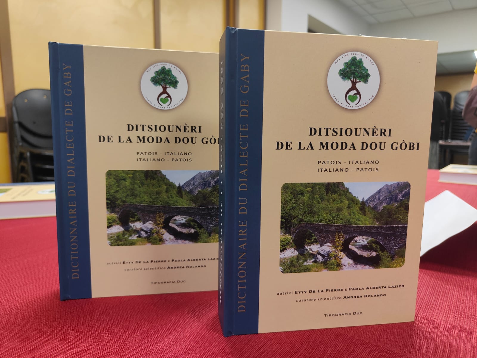 C’era un tempo in cui, a Gaby, ogni famiglia aveva almeno una capra per assicurarsi il latte dalla primavera all’autunno. D’estate toccava ai bambini portare al pascolo gli animali facendo “lou tor”. Al mattino presto, andavano in giro per il villaggio gridando “Buttì four!”, che in moda dou Gòbi, il dialetto locale, significa “mettete fuori”. Le capre uscivano dalle stalle e seguivano i pastorelli che, al crepuscolo, le riconsegnavano ai proprietari. Questo è soltanto un frammento delle oltre 21.000 testimonianze raccolte dall’associazione culturale “L’Atelier de Gaby”, guidata da Ettore Tousco, per realizzare il dizionario del patois parlato nel comune dell’alta Valle del Lys. Un sogno nato dieci anni fa e diventato realtà dopo un lungo lavoro che ha coinvolto tutto il paese, per un totale di oltre 8.000 parole catalogate.  Il “Ditsiounèri de la moda dou Gòbi” – nella sua versione cartacea e digitale – è stato presentato ieri pomeriggio davanti a un salone Palatz gremito, alla presenza delle autorità regionali e comunali, tra cui il presidente della Regione, Renzo Testolin e il deputato Franco Manes.