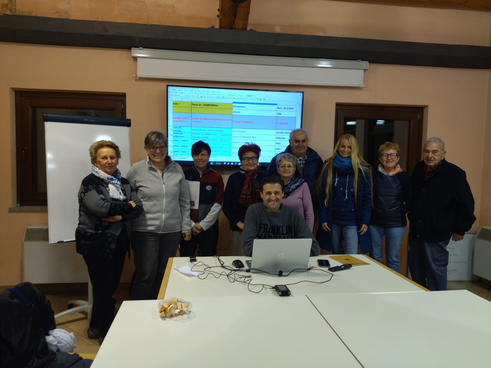 Da qui l’idea di realizzare un vocabolario, con l’aiuto di un gruppo di volontari del paese, che contenesse oltre alle parole dei disegni realizzati dagli alunni della scuola. “Per reclutare i collaboratori, abbiamo diffuso una locandina pubblicata anche dalla stampa locale – dicono Cretier e Daguin -. La risposta è stata immediata: nel giro di pochi giorni, una decina di volontari si sono offerti di partecipare. Poco dopo siamo stati contattati dal personale del Guichet linguistique francoprovenzale della Valle d’Aosta che ci ha proposto di ampliare il progetto. L’obiettivo è così diventato la realizzazione di un dizionario con piu’ di 1.900 parole tradotte in italiano e in francese, corredato da esempi d’uso, registrazioni audio e pubblicazione sul sito patoisvda.org“.