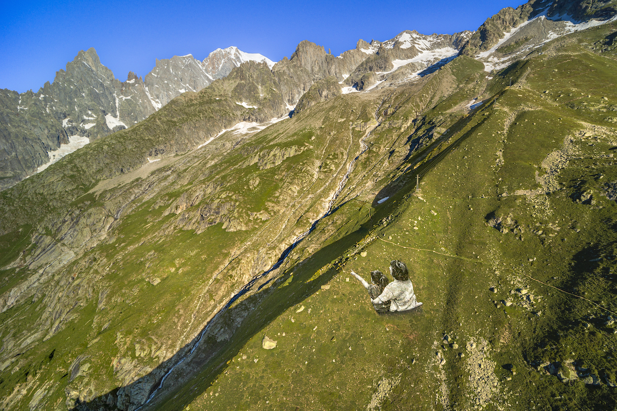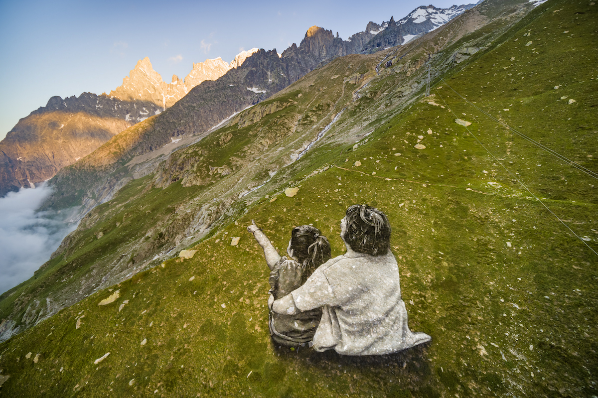 “L’idea è quella di creare ponti intergenerazionali – ha detto l’artista – il titolo Une grande Dame può riferirsi alla natura, alla nonna che rappresenta la saggezza, alla piccola che simboleggia la generazioni future, all’eccezionalità del momento che le due stanno vivendo, ma anche al destino di cambiamento a cui andranno incontro. Quest’opera rappresenta l’immensità e la bellezza ma anche la fragilità: la relazione tra le due è fragile, così come l’opera che scomparirà. Sfortunatamente, le nostre montagne cambiano molto velocemente e questo è un momento unico”.
