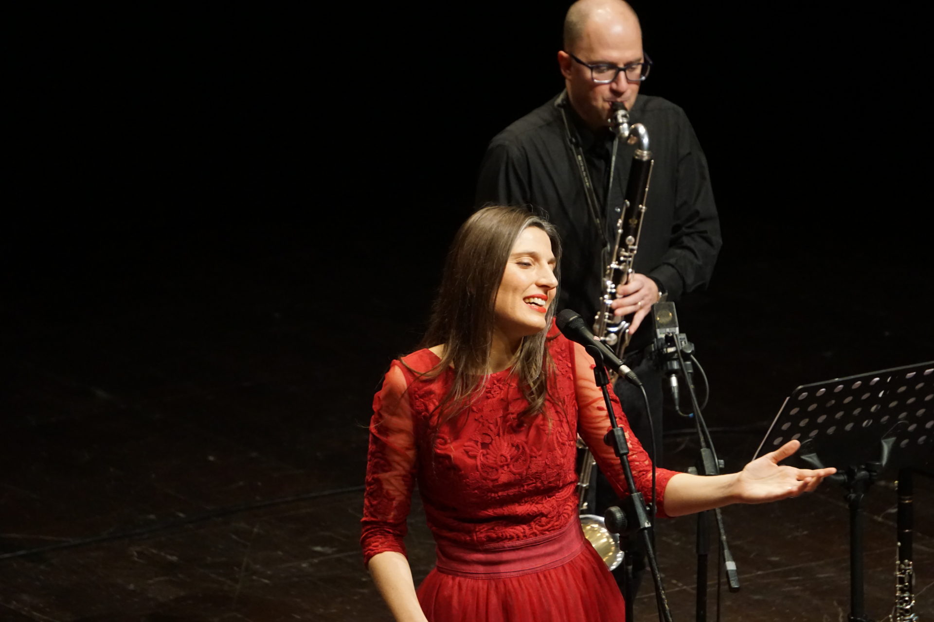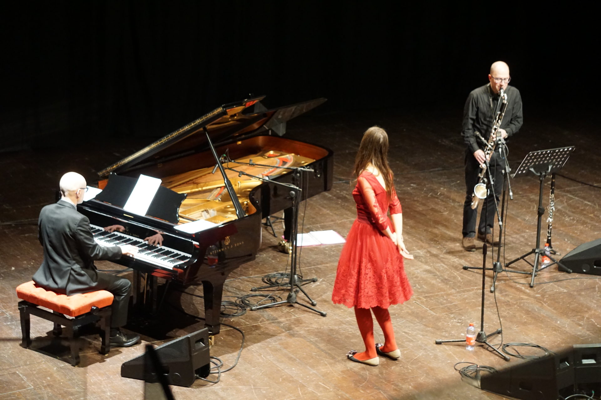 Sul palcoscenico solo un pianoforte, un clarinetto e la voce. Nessuna luce particolare, ma quella bianca, normale, fissa. A che servono gli stratagemmi quando la qualità c’è e risiede nei musicisti, Paolo Birro al pianoforte e Guido Bombardieri al clarinetto e clarinetto basso, e in una voce capace di onorare una inarrivabile della canzone non solo francese, ma internazionale.