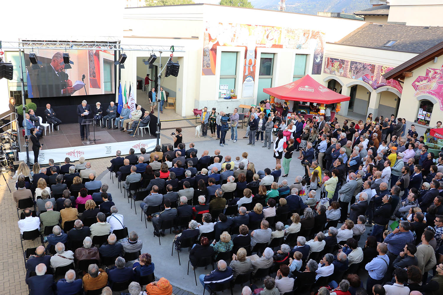 Sono stati ricordati "le migliaia di uomini e donne passati da qui, che hanno lasciato una traccia che va ben oltre queste mura": compresi, durante la benedizione del vescovo di Aosta Franco Lovignana, coloro che in questo secolo di storia hanno perso la vita sul lavoro.