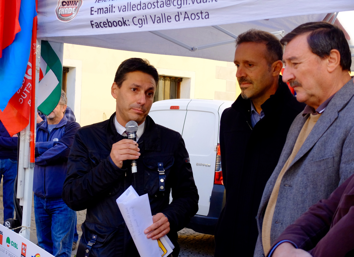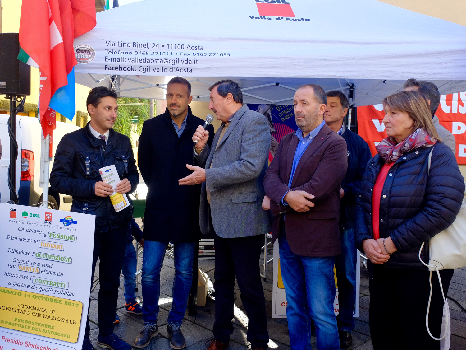 Nella giornata di mobilitazione nazionale indetta in tutta Italia anche le organizzazioni sindacali della Valle d'Aosta – Cgil, Cisl, Savt e Uil – hanno organizzato un presidio congiunto in Via Edoard Aubert, all'angolo con la biblioteca regionale. Saranno lì per tutta la giornata con l'obiettivo di informare e sensibilizzare i passanti sulle proposte del sindacato in merito alla legge di Bilancio nazionale in questi giorni in discussione al Consiglio dei Ministri.