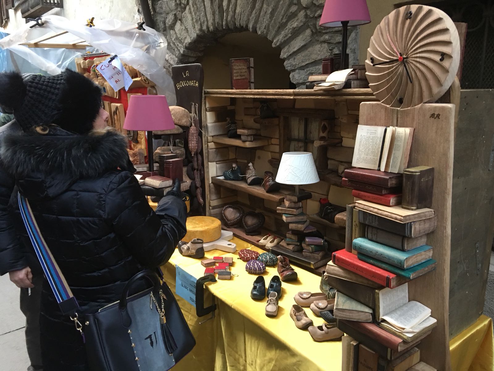 Pioggia e vento non hanno fermato gli espositori ed i visitatori della Fiera di Sant'Orso di Donnas,l'evento che apre la stagione dell'artigianato tipico anticipando la "Millenaria" di Aosta.