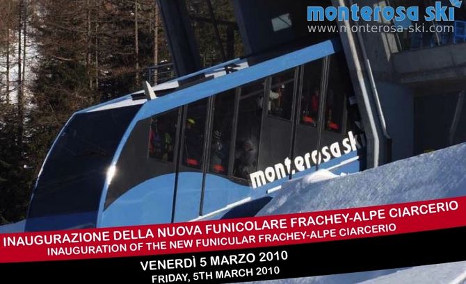 Il nuovo impianto sostituisce la storica seggiovia a due posti ad ammorsamento permanente, in attività dal 1978; la nuova tratta – già attiva da fine dicembre 2009 – rappresenta la prima funicolare valdostana dedicata allo sci (seconda in assoluto dopo la funicolare delle Terme di Saint Vincent). La funicolare – equipaggiata con due vetture – svolgerà, inoltre, anche attività notturna, rendendo accessibile l'area dell'Alpe Ciarcerio. In grado di raggiungere la velocità di 8 m/s, la nuova installazione rappresenta un mezzo innovativo, che si allontana dalla tradizionale formula di trasporto aereo a fune per offrire una vera e propria novità agli appassionati del massiccio del Monte Rosa. L'impianto è costato 12 milioni di euro attraversoun finanziamento dell'amministrazione regionale.