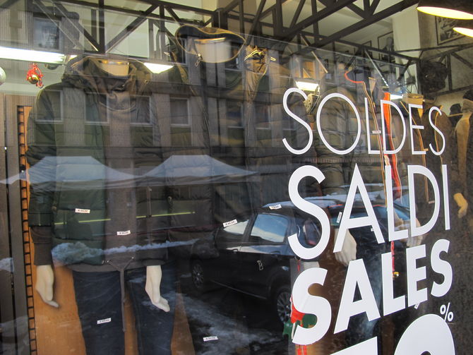 La previsione rivata dell’indagine indica che "la percentuale di sconto sarà più alta rispetto al passato. Quelli più corposi riguardano l’abbigliamento (31,1% mentre bel 2015 era stato del 25,4%, dunque +14,38%). Seguono calzature (27,35%), gli accessori (15,37%), dal -13,7% del gennaio 2015". Nel frattempo in molti negozi valdostani sono già iniziati gli sconti riservati a possessori di tessere fedeltà e simili, anticipando così di qualche giorno l’inizio ufficiale dei saldi.