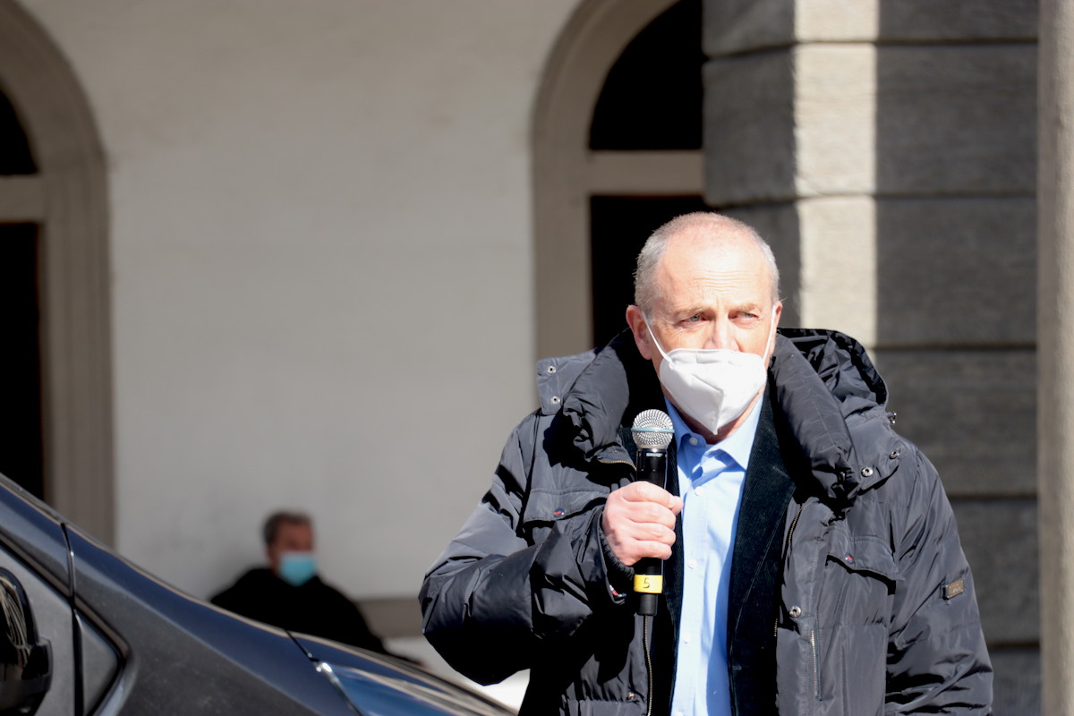 Una manifestazione-lampo, con una cinquantina di lavoratori e imprenditori e una trentina di mezzi parcheggiati in piazza – fermi, come lo sono ormai dal marzo 2020 –, in attesa dell’incontro a Palazzo regionale, per parlare “vis à vis” con l’Amministrazione.