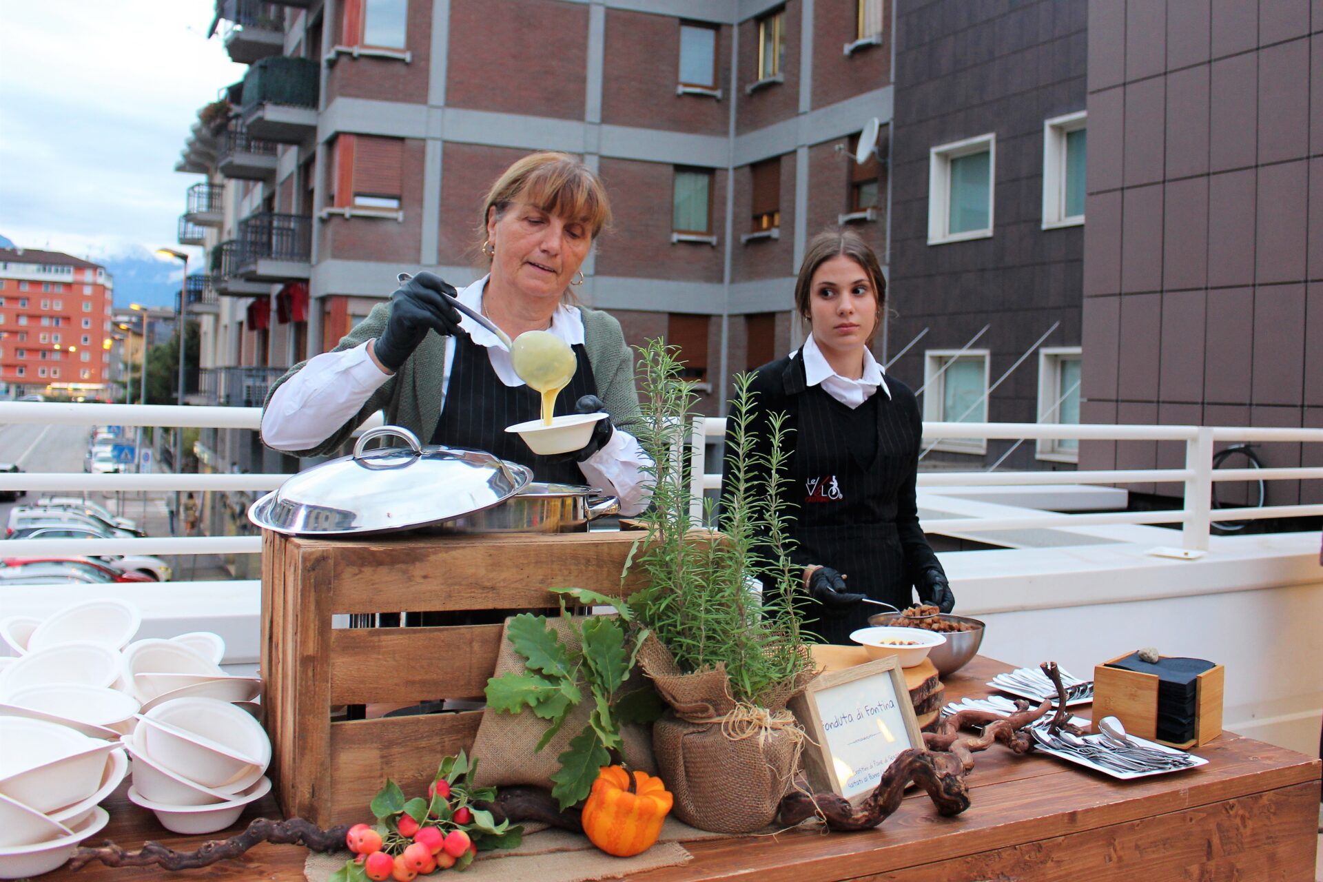 Dopo i due interventi, tutti i presenti si sono diretti sulla terrazza del Teatro Splendor dove un catering locale ha allestito un banchetto a base di Fontina. All’ombra della Torre del Lebbroso è stato possibile assaggiare una Fontina stagionata della Cooperativa di Oyace abbinata ad una gelée di timo e una Fontina d’alpeggio e quattro Fontine da assaggiare abbinate ad altri prodotti.