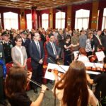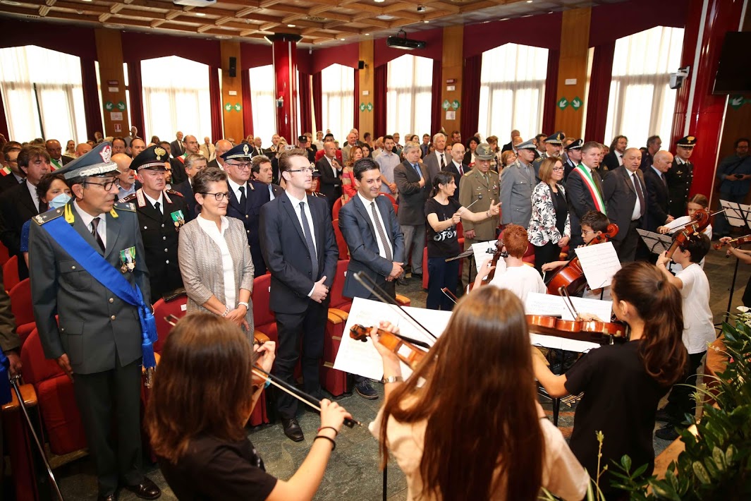 Ad allietare le celebrazioni l’Ensemble di archi della Scuola SUZUKI della SFOM – Fondazione M.I. Viglino per la cultura musicale, composto da Kristel Bovet, Aline Bozon, Océane Bozon, Sveva Botrugno, Simone Crea, Nicole Crea, Alessia Pagliara (violino) Gianmaria Foretier, Didier Pigliacelli (violoncello) e Lorenzo Pignatelli (contrabbasso), diretti da Sara Mangaretto, che ha eseguito l’inno d’Italia e l’inno della Valle d’Aosta.