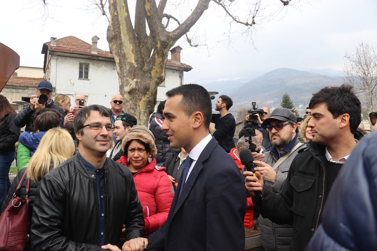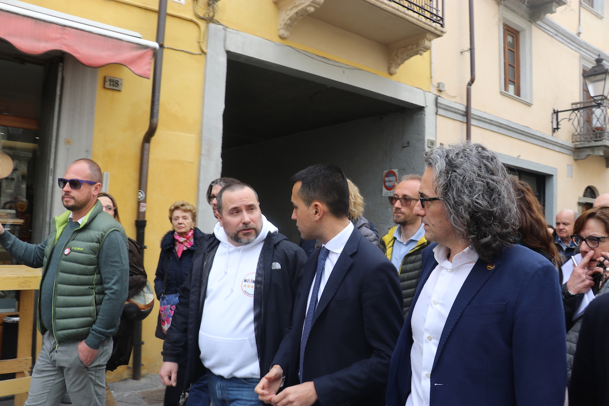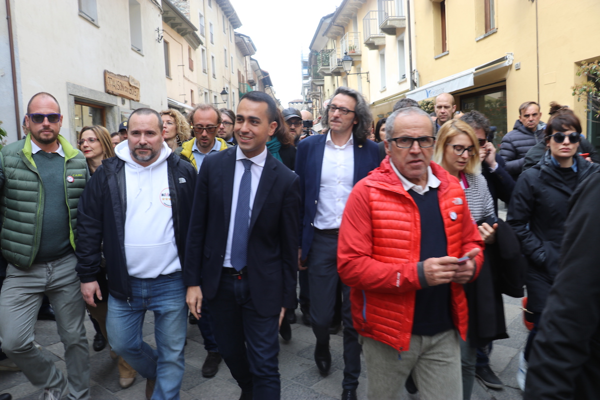 Di Maio è arrivato ad Aosta intorno alle 10.30 per sostenere la raccolta firme della lista locale. "Abbiamo già raggiunto le 1000 firme" annuncia.
