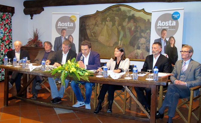 A fare da supporto ai due candidati c’erano i rappresentanti (presidenti, segretari ed ex segretari) dei quattro partiti che compongono la coalizione. Pochissimi gli accenni al programma, con la promessa di parlarne nei prossimi incontri, tanto politichese e qualche equilibrismo dialettico. “Dobbiamo ristabilire un rapporto stretto con i cittadini, puntando su turismo e imprenditorialità per uscire dalla crisi”, ha esordito Raimondo Donzel, consigliere regionale del Pd, a cui ha fatto eco uno stringatissimo Ennio Pastoret (UV): “C’è bisogno di positività”. Di alleanze e nuove “collocazioni politiche” hanno parlato invece Maurizio Martin (Stella Alpina) e Claudio Lavoyer (Creare Vda). “Si tratta di un progetto che vuole continuare il lavoro svolto dall’attuale maggioranza – ha spiegato il primo – avvalendosi della collaborazione della parte di minoranza che si è sempre dimostrata costruttiva”. Ambivalente anche Lavoyer che ha chiuso il cerchio definendo il progetto “una coalizione autonomista di centrosinistra, supportata da una lista civica, la nostra, di persone prima di tutto motivate”.