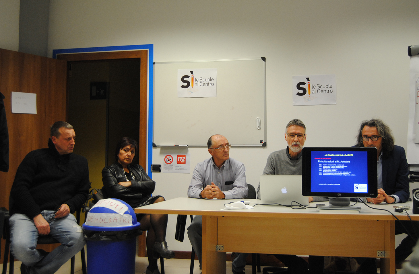 Argomento contro il quale si è costituito, ormai diversi mesi fa, il Comitato Sì, le scuole al centro, che torna alla carica dopo il tentativo di indire un referendum comunale per bloccare l'avanzare del progetto. La simbologia che il comitato sceglie è quella del bavaglio, con l'accusa esplicita rivolta all'amministrazione del Capoluogo di voler mettere la “mordacchia” ai cittadini: “La paura della maggioranza è stata tale – ha spiegato il consigliere comunale Étienne Andrione – che sono subito corsi a chiudere definitivamente le porte escludendo la materia urbanistica, l'80% della vita di una città, dalla possibilità di referendum, innalzando col nuovo regolamento il numero di consiglieri per proporre un quesito portandolo a maggioranza, 15 consiglieri, mentre prima ne bastavano un terzo, una chiusura inquietante”.