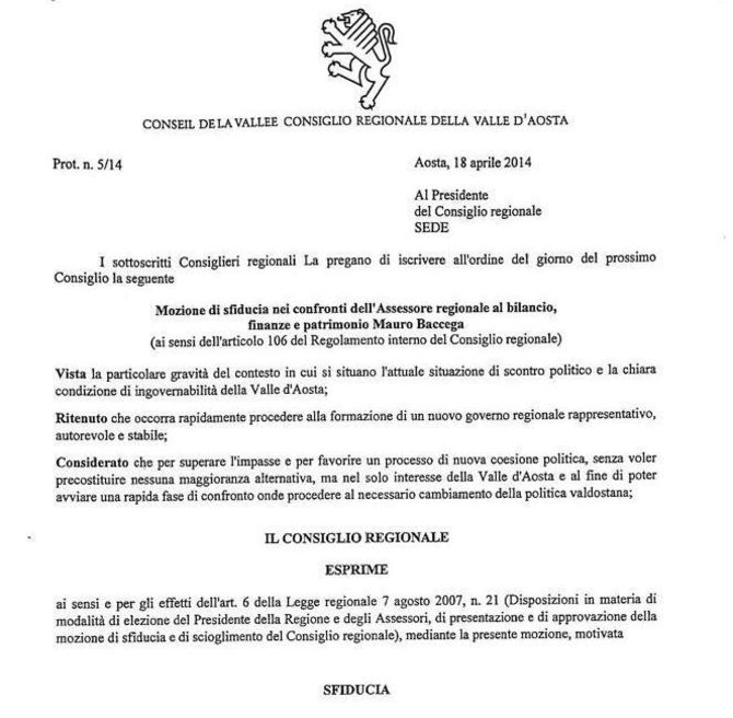 Come aveva promesso ieri, Leonardo La Torre ha depositato presso gli uffici della presidenza del Consiglio Valle le otto mozioni di sfiducia nei confronti degli assessori regionali, questa mattina, poco prima di mezzogiorno.