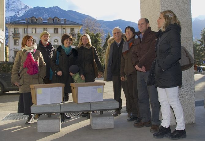 Sono 7.748 le firme autenticate di cui 7369 certificate, consegnate nel primo pomeriggio di oggi alla Presidenza del Consiglio regionale dal comitato promotore di iniziativa popolare contro la costruzione del pirogassificatore in Valle d’Aosta. Le firme sono state depositate per dare avvio all’iter referendario. Della delegazione arrivata a Palazzo regionale facevano parte i primi firmatari Marco Grange, Jeanne Cheillon e Anna Gamerro che sono poi coloro che hanno consegnato i due scatoloni contenenti i 386 moduli che raccolgono le firme.