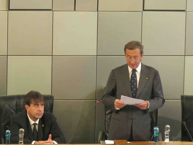 Il presidente della Camera dei Deputati è stato ospite oggi, sabato 9 ottobre, del Consiglio regionale.Qui ha ascoltato le autorità regionali e i capigruppo e poi è intervenuto sui problemi e prospettive del federalismo e dell'unità nazionale.