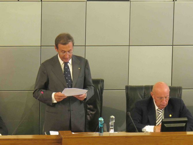 Gianfranco Fini, che ha preso la parola in aula dopo il Presidente del Consiglio Valle, Alberto Cerise, dei Capigruppo in Consiglio regionale e del Presidente della Regione, Augusto Rollandin, si è fortemente concentrato sul rapporto tra federalismo e unità d’Italia. Non senza rinunciare ad una, seppur cauta, contrapposizione alle prese di posizione un po’ forti espresse di recente dalla Lega nord. “Alla base della richiesta, da parte dei cittadini – ha detto – di rafforzare il processo di forte decentramento territoriale e alla base della crescente popolarità che il termine federalismo incontra non vi e’ un nostalgico guardare indietro alle piccole patrie preunitarie e nemmeno il fascino per una inesistente identità padana, ma l’insoddisfazione per il cattivo funzionamento del modello stato centralista”.