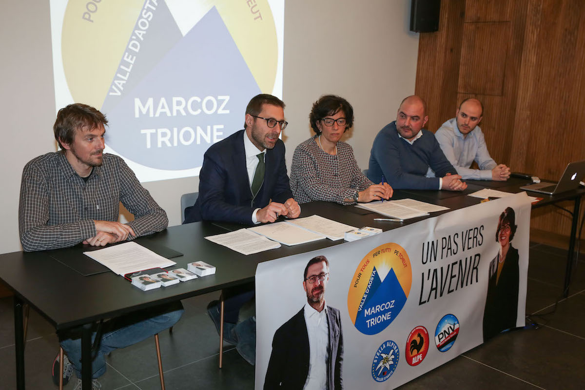 “La parola cambiamento l’abbiamo sentita in tutte le salse, in tutte le campagne elettorali di tutte le forze politiche. – ricorda durante la conferenza stampa di presentazione della lista, Marcoz – Il cambiamento che noi vogliamo è costruttivo, parte dalla conoscenza della realtà per portare a delle soluzioni per il futuro che danno speranza, benessere e progresso alla nostra regione”.
