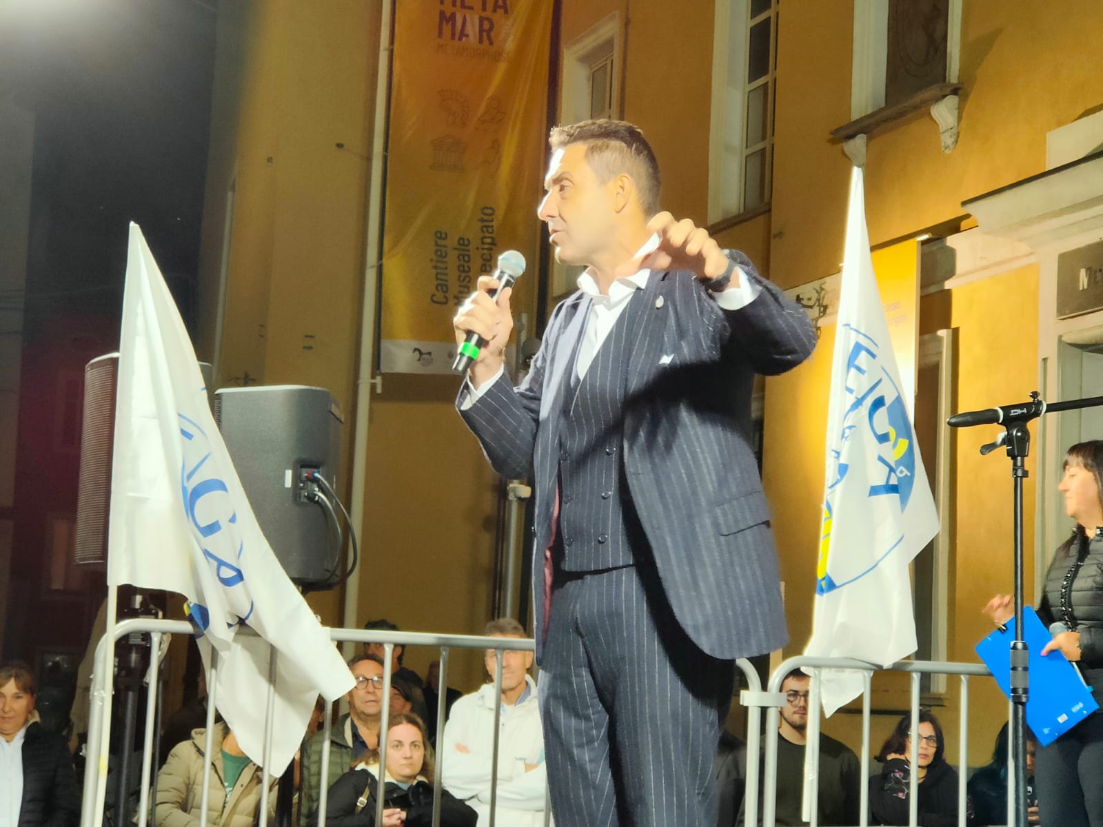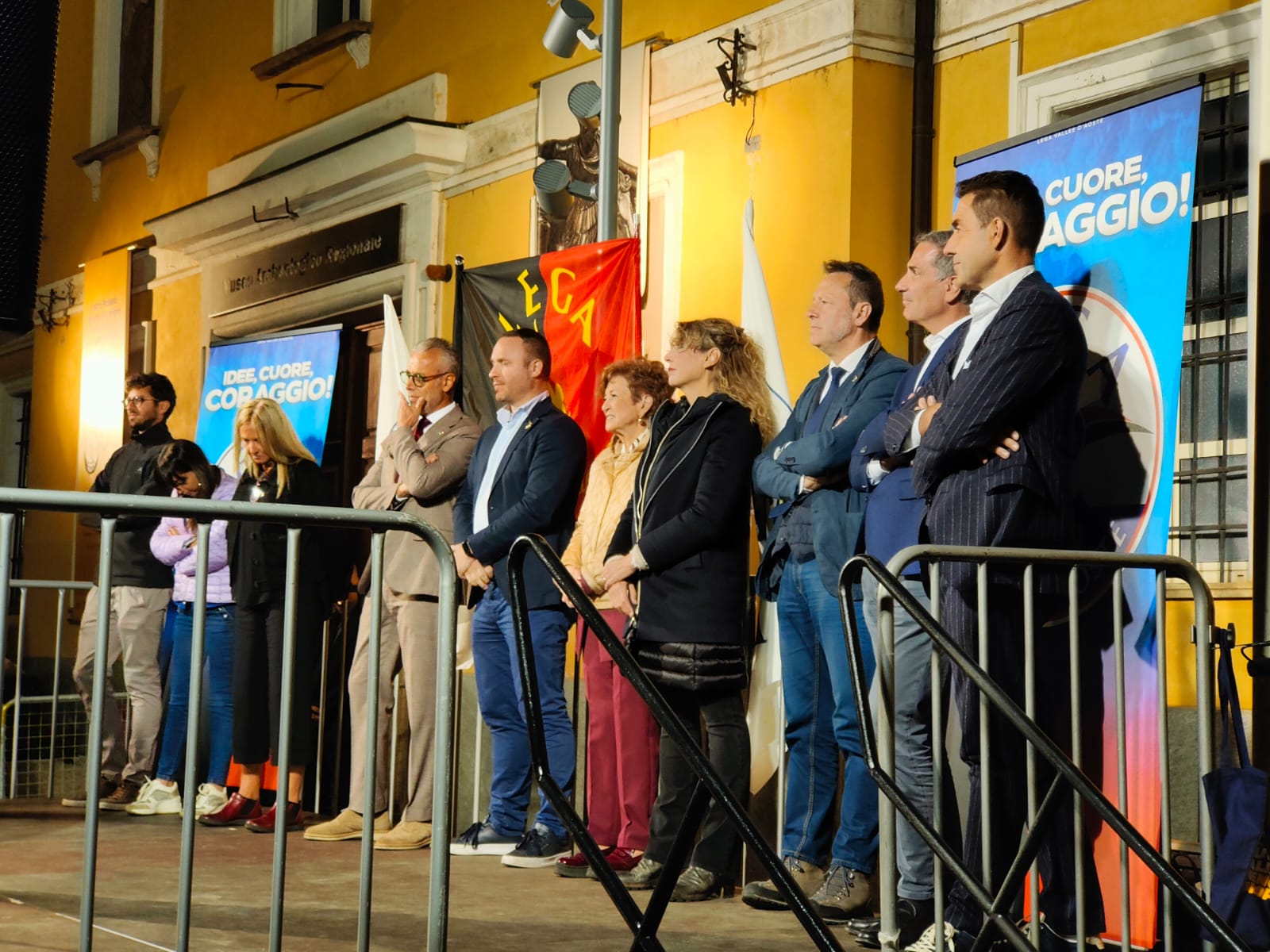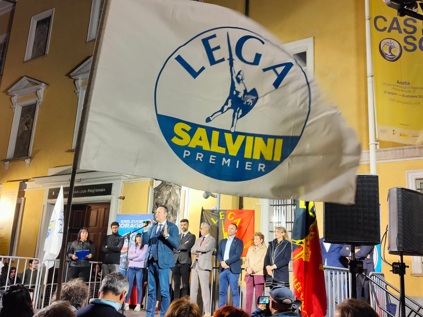 “Con chi si alleano i signori dell’Union Valdôtaine? Con il Pd. Sapete cosa vota il Pd quand’è a Bruxelles? Vota per cedere la sovranità italiana alla Von der Leyen. Loro vogliono gli Stati uniti d’Europa, vogliono l’Europa nazione e vogliono togliere qualsiasi possibilità per il nostro governo e il nostro Parlamento eletto con i vostri voti di essere ‘maître chez soi’. Sono l’antitesi della sovranità regionale e italiana. L’opposto di essere autonomisti”. Mancano pochi minuti alle 20.30 quando il generale Roberto Vannacci, vicesegretario della Lega e europarlamentare, arriva in piazza Roncas, ad Aosta. Fotografie e autografi prima di salire sul palco insieme ai consiglieri comunali e regionali uscenti. Già in Valle lo scorso 19 giugno, è stato lui ieri sera – giovedì 25 settembre – a chiudere la campagna elettorale del Carroccio, dopo settimane di incontri sul territorio che hanno puntato tanto sulle presenze nazionali. Viceministri, ministri, europarlamentari, deputati. Giorgetti, Salvini, Rixi, Tonelli, poi Crippa, Sardone, Molinari, Bruzzone. E il cerchio si chiude questo pomeriggio, all’Hb Hotel, alle 14,30, con il ministro agli Affari regionali, Roberto Calderoli.