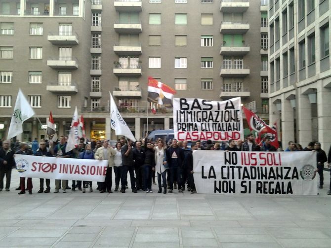 “Stop invasione”, “No Ius Soli, la cittadinanza non si regala” e “Basta immigrazione, prima gli italiani”. E’ la ricetta sulla questione migratoria di “Casapound”, “Lega Nord” e “Sovranità”, nella sintesi degli striscioni visti nel tardo pomeriggio di oggi alla manifestazione organizzata in piazza Deffeyes, di fronte al palazzo regionale, dai tre movimenti.