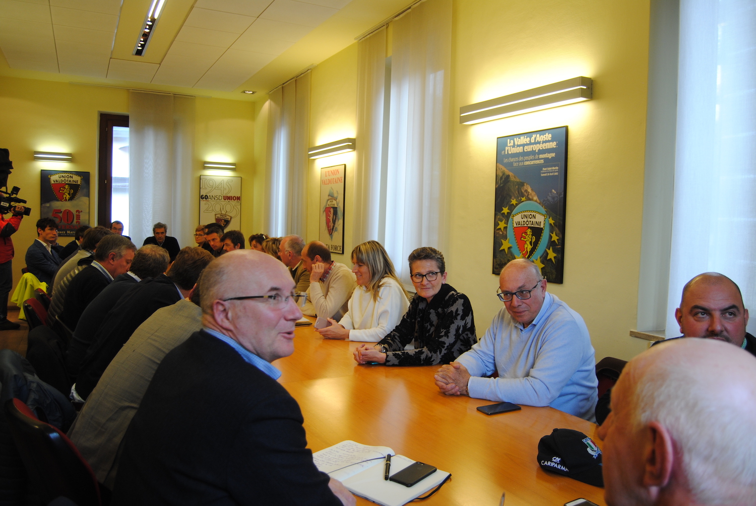 Facce distese ma parole poche dopo le tre ore piene di “conclave”, la prima con i soli rappresentanti dei 15 (Uv,Uvp,StellaAlpina,Alpe ed Epav, anche se non c’era nessuno per questi ultimi), poi con l’arrivo della Vice coordinatrice di Pnv Annita Prezzavento e Luca Distasi, in rappresentanza del movimento giovanile “Pour Nos Jeunes”.