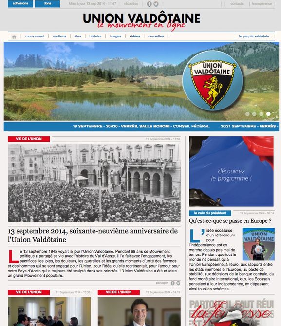 Inoltre, il sito è registrato come testata online, il suo direttore è Denis Falconieri. “Union Valdôtaine, le Mouvement en ligne sarà il nostro nuovo mezzo di comunicazione – ha spiegato – un giornale online che dedicherà molto spazio alla vita del movimento, all’attività dei nostri eletti a tutti i livelli, arricchendo le notizie con immagini e video”. Un’altra sezione importante è quella dedicata al “Peuple Valdôtain”: visitandola sarà possibile consultare l’ultimo del giornale, ma anche l’archivio completo di tutti i numeri dal 1954.