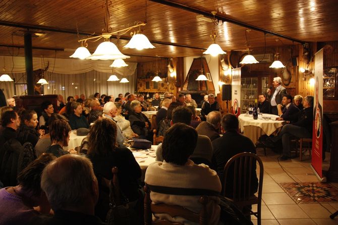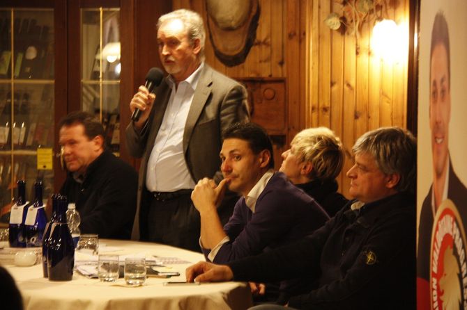 Quando arriva il momento delle domande, dopo alcuni interventi per rompere il ghiaccio, si alza anche la mano di qualche personaggio noto, come quello di Manuela Bergamasco, consigliere comunale proprio a Quart ed esponente di Valle Virtuosa – “Quali indicazioni date per il voto al Senato? Sui rifiuti, come la pensate?” – e di Bernard Clos, Presidente dell’Associazione Amis des Batailles de Reines, che ha proposto una riflessione sul futuro dei contributi destinati all’agricoltura e al mondo degli allevatori.