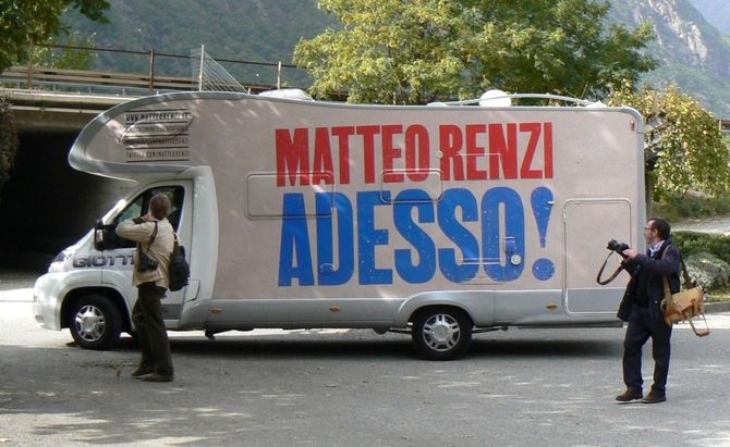 Il camper del “rottamatore” arriva in tarda mattinata ad Arnad, alla Maison Bertolin. I tempi sono strettissimi, la maratona delle primarie del Pd prevede tante tappe affiancate, c’è giusto il tempo di salutare il comitato promotore valdostano, lanciare un breve intervento, rispondere alle domande, fare fronte all’assalto dei microfoni, gustare un po’ di lardo e vino e ripartire alla volta del Piemonte.