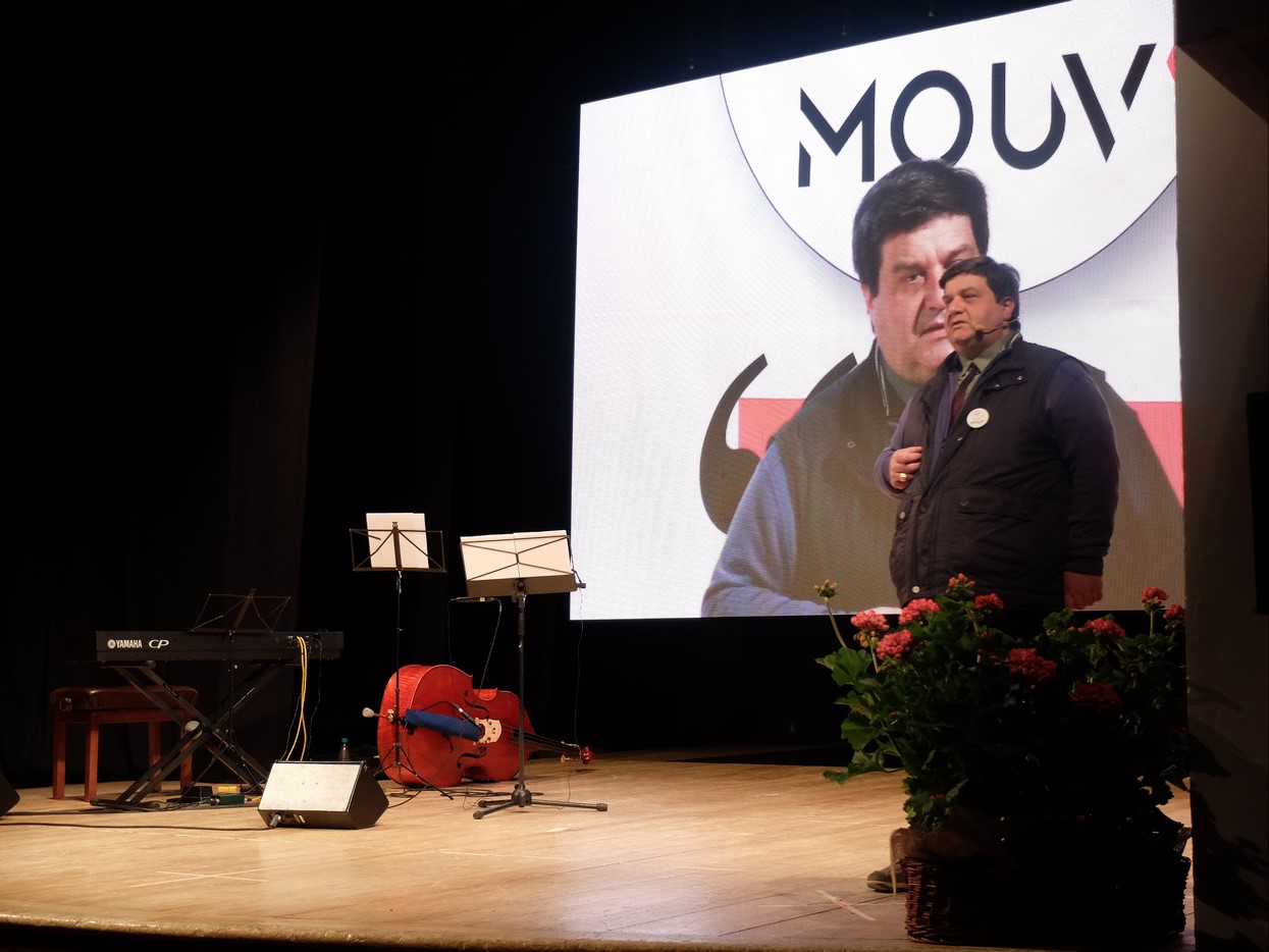 La campagna di Mouv' era cominciata con la promessa di 100 incontri nel giro di poco più di un mese in tutti i Comuni valdostani e il “coordinatore di peso” del movimento – com'è stato presentato prima di salire sul palco del Cinéma De la Ville – Mauro Caniggia Nicolotti, ha subito rivendicato il risultato ottenuto, concedendosi anche lui una battuta sulle vicende di cronaca giudiziaria di questi giorni che stanno coinvolgendo l'Union Valdôtaine e, in particolare Augusto Rollandin: “È stato come un turbinio – ha detto – il nostro, più che un Tour, è stato un Tor”.