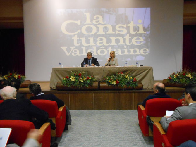 Se la costituente valdostana fosse un edificio, stamattina forse avremmo assistito alla posa della prima pietra. Più di 200 persone hanno affollato la sala congressi della Maison Grivola, a Cogne, per l’assemblea pubblica convocata dall’Uvp e aperta al pubblico e alle forze politiche valdostane. Cinque ore di discussione, una ventina di interventi lunghi e circostanziati, ai quali, per motivi di tempo, non è seguito un vero dibattito organizzato sotto forma di botta e risposta. Sarà per la prossima volta: l’appuntamento è già stato fissato per il 26 febbraio. “Una data simbolica, l’anniversario dell’approvazione, nel 1948, dello Statuto Speciale” ha spiegato Luciano Caveri, al termine dell’incontro, presentato assieme ad Alessia Favre, presidente dell’Uvp. “Quello della costituente – ha commentato – è un cammino pluralista, che tiene conto delle istanze di tutti, a partire dal confronto con la popolazione e con i partiti politici che hanno risposto al nostro invito a discutere. L’Uvp ha lanciato l’idea, ma adesso non è più nostra, appartiene a tutti quelli che ci si riconoscono, e che possono sostenerci aderendo al comitato e lottando per difendere l’autonomia”.
