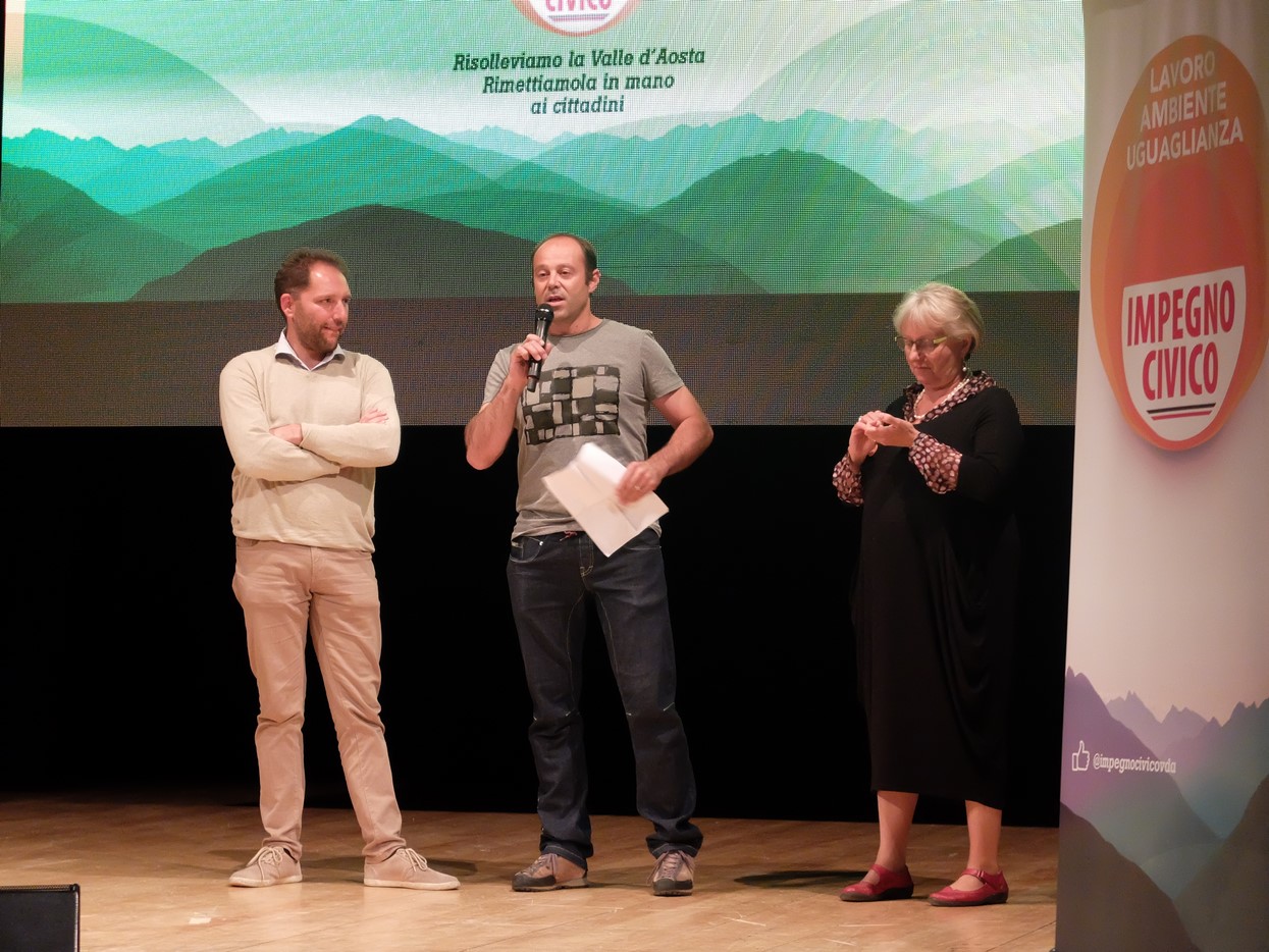 Poco prima, l'altro consigliere uscente, Andrea Padovani, aveva attaccato sempre il 5 Stelle, ma anche Lega e Union Valdôtaine: “In questa campagna c'è chi vuole prendersi la Valle d'Aosta, magari con l'aiuto della gendarmerie, poi c'è chi vuole prendersi l'autonomia e si dimentica dell'onestà e chi invece si prende il solito avviso di garanzia – ha detto – noi vogliamo prenderci l'onore e l'onere di risollevare la Valle d'Aosta”.
