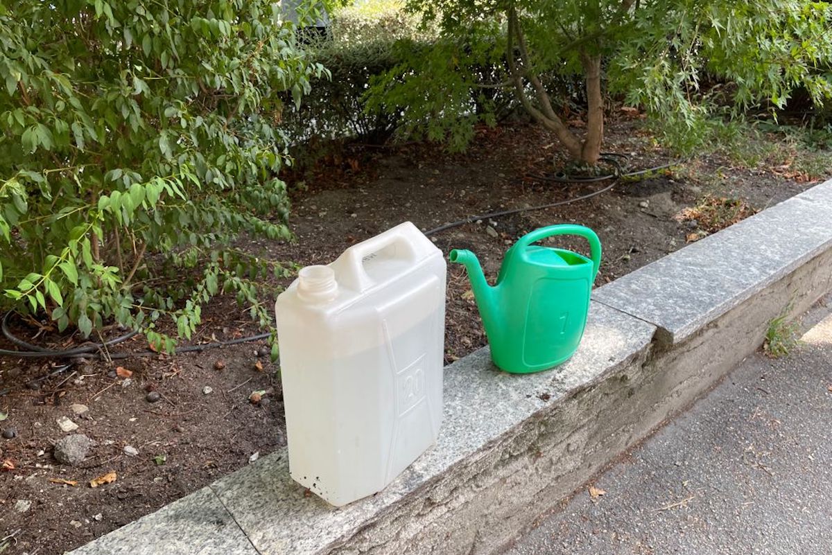 Mancava fino ad oggi anche in viale della Pace, dove da domenica scorsa due donne – madre e figlia residenti in un comune limitrofo –, si sono recate due volte al giorno, “armate” di taniche, annaffiatoio e buona volontà per cercare di salvare il salvabile.