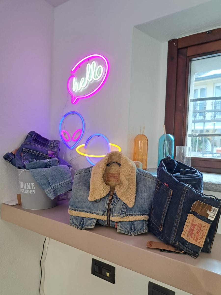Moderno, fresco, semplice, ma anche colorato, pret à porter e sempre elegante. Una selezione che permette dare sfogo alla creatività con abbinamenti senza tempo, come ad esempio tra un cappotto anni ’70 con ricami personalizzati e un completo da donna dal colore vivace e dalla vestibilità moderna. Oppure un’accoppiata giacca di jeans con “appliques” e pantaloni cargo coloratissimi. E non è tutto: alla Vintagerie puoi trovare anche una piccola collezione di Levis’ di seconda mano, sia cartellinati che non, per acquistare sotto casa anche i tuoi jeans made in USA.