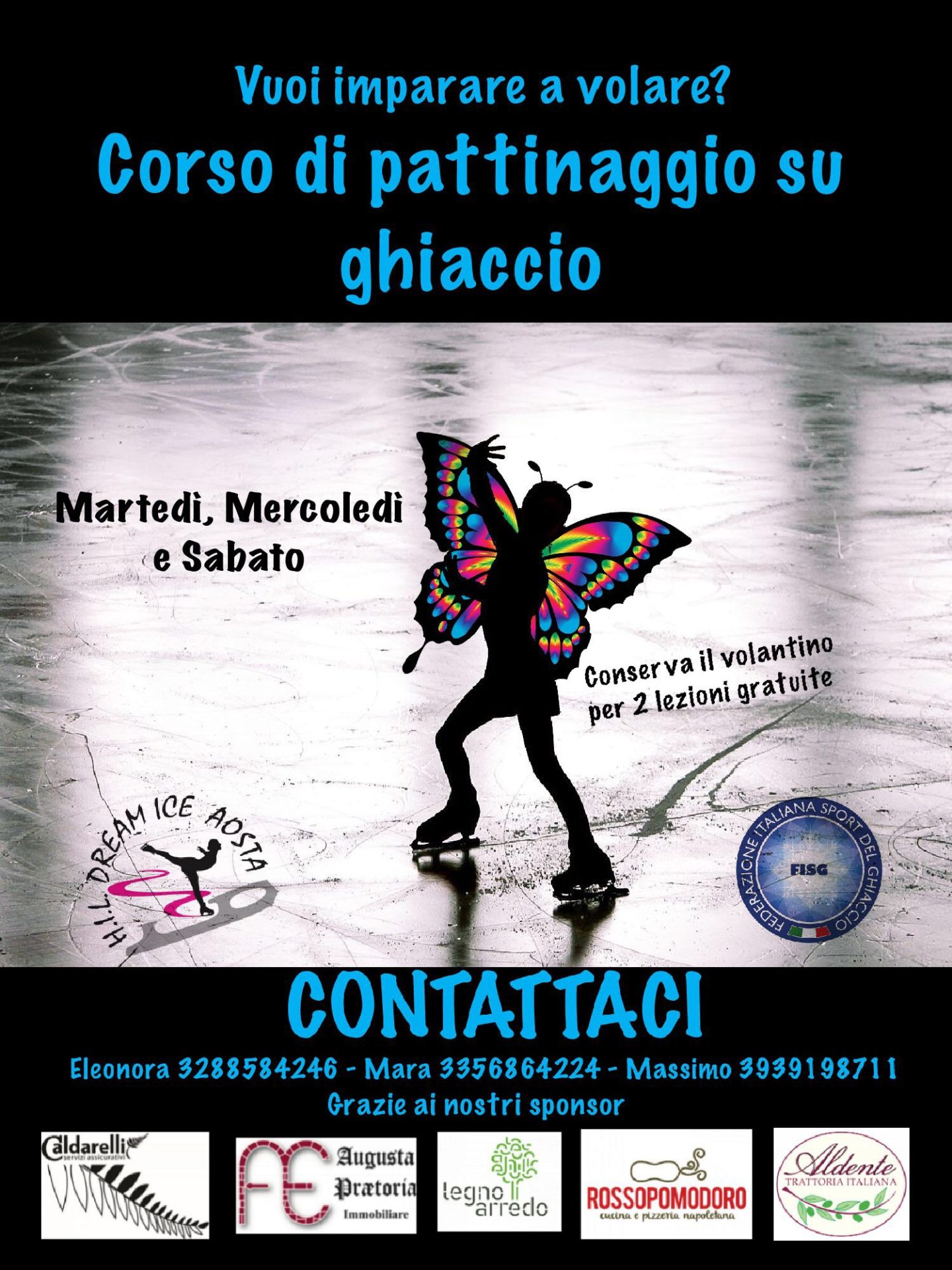 Non solo, conservando e mostrando il volantino di invito ai corsi è possibile avere due lezioni gratuite, per cominciare a provare l’emozione sul ghiaccio.