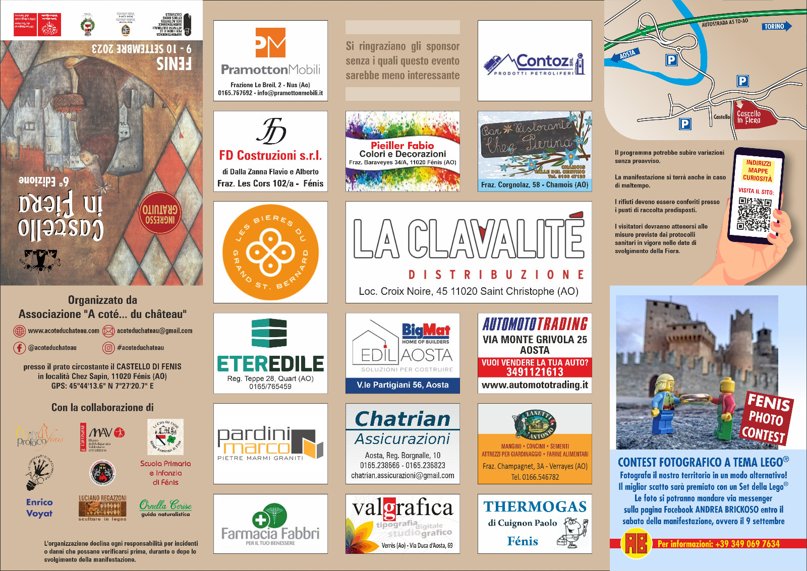 Inoltre, mentre gli adulti potranno approfondire l’ambientazione e l’architettura tipiche del Medioevo grazie alle passeggiate al fianco della guida Ornella Cerise o alle visite guidate al Castello, per i più piccoli saranno pensati laboratori di falegnameria, denominati “Fantasmagorico Castello” e organizzati presso il vicino Museo dell’artigianato valdostano, e di costruzioni con i Lego®, a cura di Andrea Brickoso. Previsto anche un correlato contest fotografico a tema che premierà il miglior scatto alternativo del territorio con un Set originale Lego®: per poter partecipare sarà sufficiente inviare le proprie immagini via Messenger sulla pagina Facebook Andrea Brickoso entro sabato 9 settembre (per informazioni: 3490697634).