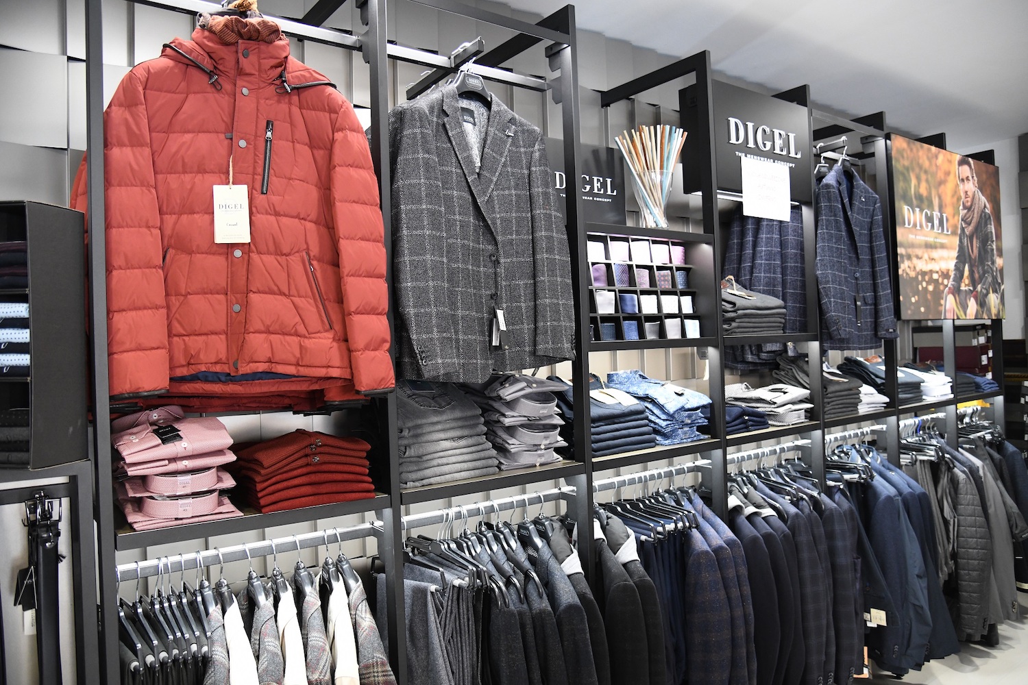 E ai “classici” capi da provare nella boutique, come la linea giovane Distretto 12 o la tedesca – ma arricchita dai migliori materiali italiani – Digel, dai tratti più classici ed eleganti, che si trasforma in Digel Move quando “strizza l’occhio” alla moda più giovane e fresca.