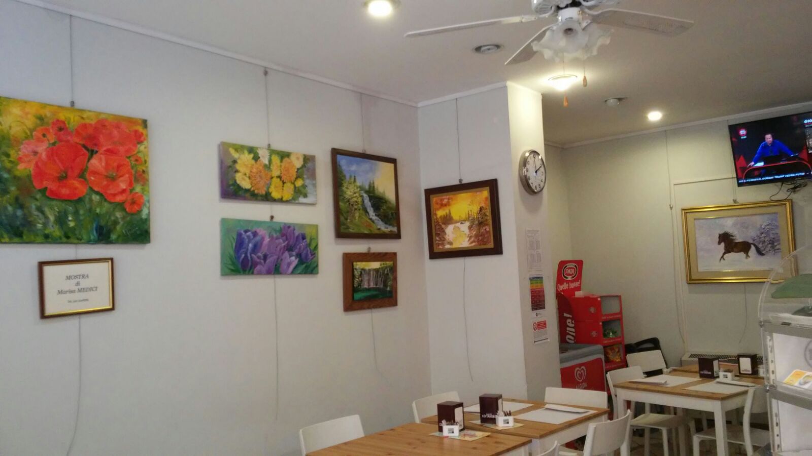 Le luci del ristorante Bar La Fontana si accendono già alle 7 del mattino quando nel locale si diffonde l’aroma del classico cappuccino e dei cornetti appena sfornati. Aspettando l’ora di pranzo e di cena è possibile poi rilassarsi ammirando le opere dei pittori dell’Associazione artisti Valle d’Aosta. Tutti i mesi gli artisti dell’Associazione hanno nel Bar La Fontana una vetrina per le loro creazioni.