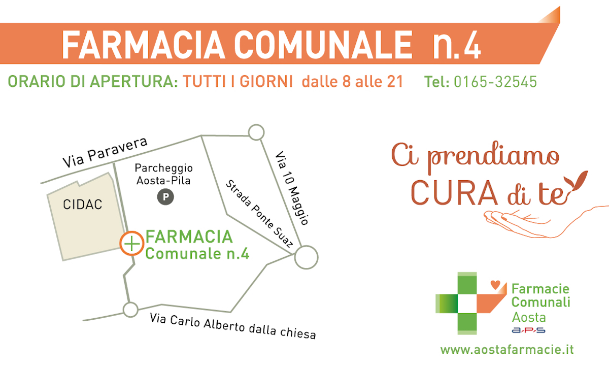 Completato lo scorso 5 dicembre 2016, il trasferimento della Farmacia comunale n° 4 dalla sua sede precedente in via Saint-Martin-de-Corléans a quella attuale via Carlo Alberto Dalla Chiesa, nei pressi dell'Ipermercato Gros Cidac, si è dimostrato da subito una scommessa vinta.
