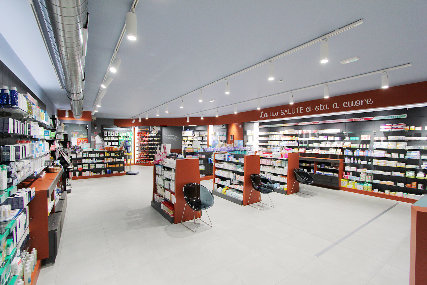 Una farmacia di nuova concezione che, oltre a proporre ai clienti un orario di apertura molto ampio e spazi vasti ed accoglienti, offre una vasta gamma di prodotti e servizi tra i quali un laboratorio dedicato alla autoanalisi, la possibilità di noleggio dei tiralatte e di utilizzo dell'holter pressorio, uno sfigmomanometro portatile per misurare la pressione arteriosa.